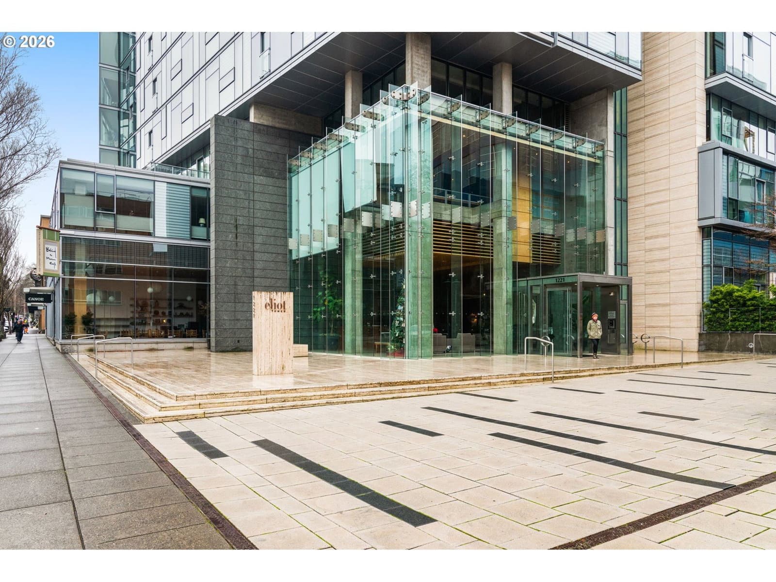 Light-filled and sophisticated, this two-bedroom urban residence in the Eliot Tower is ideally positioned in Portland’s Cultural District, overlooking the new Portland Art Museum expansion, the Mark Rothko Pavilion and Ubo Rondinone's gilded bronze sculpture named "the sun". Floor-to-ceiling windows frame inspiring city and skyline views, offering luminous daylight and captivating city lights after dusk. A Juliet balcony invites fresh air and an effortless connection to the outdoors.The open, flexible floor plan accommodates both a generous living room and a defined dining area, creating an inviting setting for everyday living and entertaining. The primary suite enjoys the dramatic city outlook through floor to ceiling glass and a rectangular picture window. A thoughtfully integrated home office sits in the corner of the primary bedroom. A spacious luxurious bath features luxurious finishes, built in storage and adjacent dual closets with custom organizers. The guest bedroom—tucked discreetly beyond the main living space—functions equally well as a den. Completing the home is a rare and highly sought-after utility room offering laundry facilities and substantial storage, ideal for larger items such as bicycles and shelving for home goods. The Eliot community amenities are numerous with concierge service, an outdoor deck with lounge furniture, a library with fireplace and seating, a conference room and a well equipped gym. The sale includes a deeded storage room located just steps from the deeded parking space.