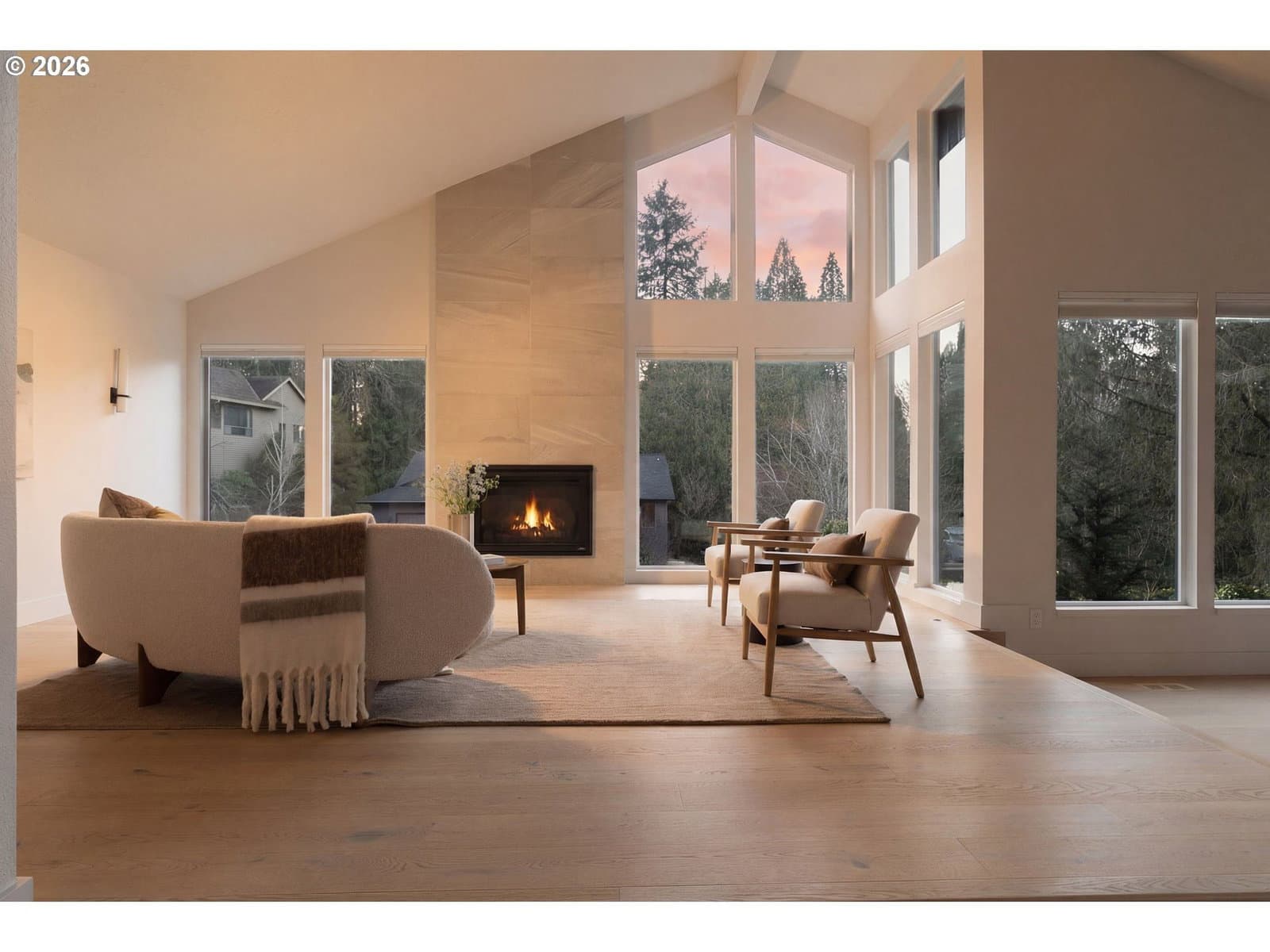 This fully remodeled Northwest contemporary blends timeless architectural style with modern luxury. The one-level home features vaulted ceilings and floor-to-ceiling windows that flood the space with natural light, offering seasonal territorial views. Inside, enjoy the elegance of white oak flooring, heated tile in bathrooms, and custom walnut cabinets and built-ins throughout. The kitchen is a showpiece with high-end appliances, a huge island, exquisite tile work, and a casual dining area that opens through sliding glass doors onto a patio with scenic views - perfect for entertaining or relaxed family meals. Outside, the property is graced with mature, beautiful Northwest landscaping, providing serene outdoor spaces that complement the home’s architectural charm. Additional highlights include a spacious RV garage, a durable 50-year tile roof, and updated 2020 gas water heater and HVAC system. Don't miss out on this one of a kind designer home.