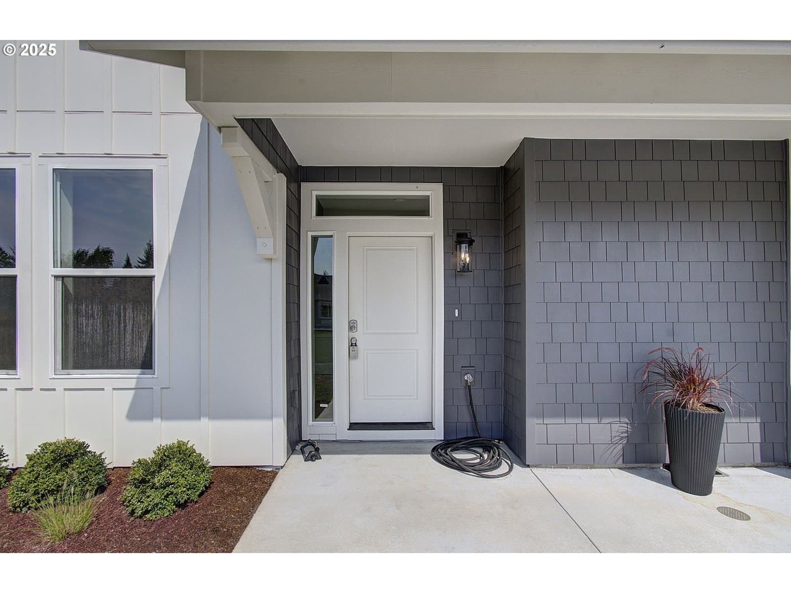 Experience modern living in this newly built two-story home, privately set at the end of a long shared drive for added seclusion. Thoughtfully designed with both style and functionality in mind, this 3-bedroom, 2.5-bath residence features an open-concept layout accented by tasteful farmhouse-inspired finishes. The main level offers durable laminate flooring, upgraded lighting, and a spacious great room that seamlessly connects to the kitchen—complete with stainless steel appliances and ample room for cooking and entertaining. Step outside to the back patio, perfect for morning coffee or summer gatherings. Upstairs, you’ll find three generously sized bedrooms, including a comfortable primary suite, along with beautifully finished bathrooms. Additional highlights include an EV charger in the garage and modern touches throughout. Truly move-in ready and designed for effortless everyday living.