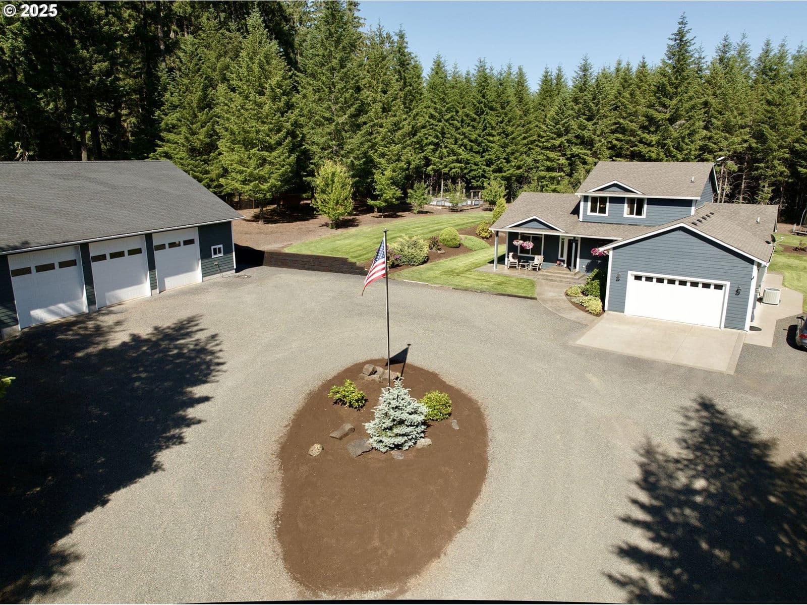 Dreamy country retreat just 25 minutes to Springfield/Eugene & the UO! Built in 2014, this move-in-ready 4 BD / 2.5 BA home (2,345 SF) combines modern finishes with 7.19 acres of usable, F-2-zoned land and an incredible 40' × 84' shop. Inside, the main-level primary suite features a 9' × 9' walk-in closet and dual-vanity bath. The vaulted living room flows into the formal dining area and a true chef’s kitchen with fresh quartz counters, subway tile backsplash, double ovens, cooktop, walk-in pantry, and upgraded features including a new dishwasher. BRAND NEW Belleluxe waterproof wood laminate (Lodge Hickory) flooring with new baseboards runs throughout the entire main floor. Expansive 18'6" family room warmed by a woodstove. A den/office, powder room, oversized laundry/mud room, and a welcoming covered front porch round out the floor plan. Entertain outdoors on the stamped-concrete patio with built-in firepit. The exterior was repainted in 2021, and the original 11-year roof remains in excellent condition. Attached 24' × 22' garage adds everyday convenience. The grounds impress with ~2 acres fully landscaped, 5-zone underground sprinklers, and 2-zone drip system. Amenities include a high-fenced garden with water/power, powered chicken coop, and above-ground pool with dedicated 110V outlet. The balance of acreage includes ~4 acres of commercially thinned Douglas fir (replanted 2001) and 1 acre replanted in 2015, offering both privacy and long-term value. Direct access to BLM land makes this property a paradise for hiking, riding, or hunting. Septic pumped in 2021. The showpiece shop (built 2019) measures 40' × 84' with five bays—two oversized 12'×14' RV doors and three 12'×12' bays—plus RV plug-in, exterior dump station, and a newly completed full bathroom. A 16' × 40' mezzanine offers future space for an office, gym, or guest suite. Built on a concrete slab with 2×8 framing and composite roof. A rare chance to own a turnkey home with space to live, work, grow & play!