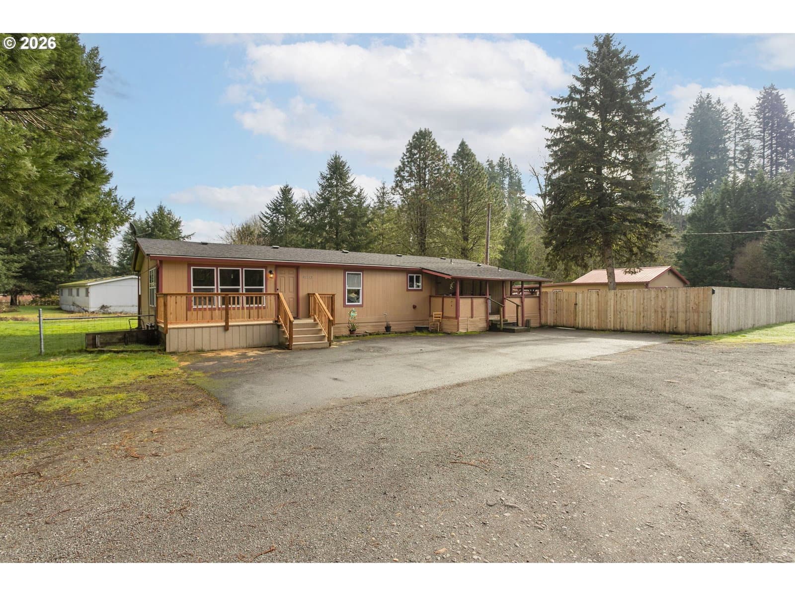 Welcome to this 1.68-acre property, offering a perfect balance of open space and an updated home. The main residence spans 1,512 square feet with 3 bedrooms, 2 updated bathrooms, and two spacious living areas. Inside, you’ll find fresh paint and new wainscoting that complement the new flooring. Both the main home and the additional finished building have been upgraded with all new APEX plumbing for lasting peace of mind. Significant recent improvements also include a new roof with a 30 yr transferable warranty, and two new decks built in 2025—perfect for enjoying the quiet, territorial views and the property's apple, plum, and hazelnut trees.In addition to the main home, the property features a charming finished building with a distinct, cozy cabin feel. The interior is finished with tongue-and-groove throughout, offering a warm and inviting atmosphere. This space includes its own kitchen with granite countertops, living area, bedroom and bathroom, providing incredible flexibility for a guest house, dedicated home office, private hobby studio, or a creative retreat. The grounds are rounded out by a practical tool shed, a two-car metal carport, and dedicated RV parking with a hookup that conveniently connects to the septic system. This is an excellent opportunity for anyone looking for a move-in-ready home with versatile extra space on acreage. Buyer to do due diligence.