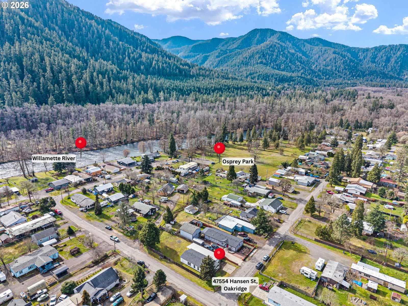 Move-in ready and updated, this 3-bedroom, 2-bath home sits on a spacious .22-acre corner lot in the heart of Oakridge’s outdoor paradise. Vaulted ceilings and a great-room layout create an open, light-filled living area that flows into the kitchen, featuring an eat bar, pantry, and generous counter space.The large primary suite offers a private bathroom and walk-in closet. Seperation of space between the primary suite and two additional rooms. Indoor laundry. Recent improvements — including newer windows, roof, LVP flooring, and fresh interior and exterior paint — provide peace of mind for years to come.An enclosed 18x47 attached shop with 220 electrical offers incredible flexibility and could easily be converted into a garage or hobby space. Possiblities for additional side parking or gated backyard access.Unwind on the covered patio with surrounding mountain valley views, all just blocks from the Willamette River and Osprey Park.