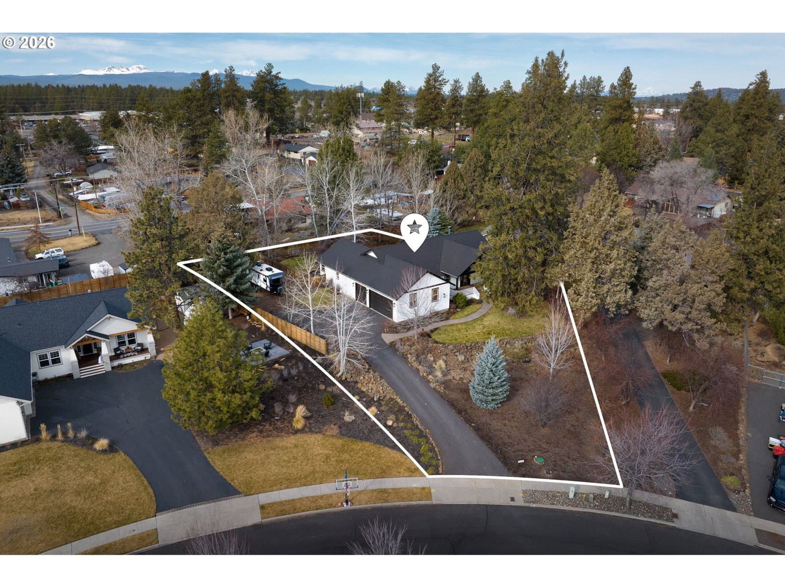 This thoughtfully updated single-level home sits on a generous half-acre in desirable SE Bend and truly checks every box. The open floor plan includes a great room that is airy and welcoming, with vaulted ceilings, a river-rock gas fireplace, gorgeous luxury laminate floors, and French doors that open to the back deck for easy indoor-outdoor living. The gourmet kitchen features a large island with a breakfast bar, farmhouse sink, beautiful custom cabinetry, built-in pantry, soft-close drawers and doors, stainless appliances and Silestone slab countertops. There's a versatile bonus room that's perfect for entertaining, working from home, or a guest room. The spacious primary suite is a relaxing retreat with dual vanities, slate walk-in shower, soaking tub, a walk-in closet and a private door to the deck. Two more bedrooms, a full guest bath, half bath and laundry room with sink complete the interior. Outside, enjoy the private backyard complete with a large deck, mature landscaping, and a fully fenced yard. The property also offers RV and boat parking with 30-amp power and sewer hookup, room for a future shop or potential ADU, and a 3-car attached garage. Recent upgrades include a new roof, exterior paint and lighting, new carpet and fresh paint in bedrooms and office, updated ceiling fixtures, a refreshed half bath vanity, mirror and lighting, a new front door and storm door, and even a custom outdoor catio. All of this in a convenient location close to schools, parks, shopping, dining, and endless recreation. [Home Energy Score = 5. HES Report at https://rpt.greenbuildingregistry.com/hes/OR10245084]