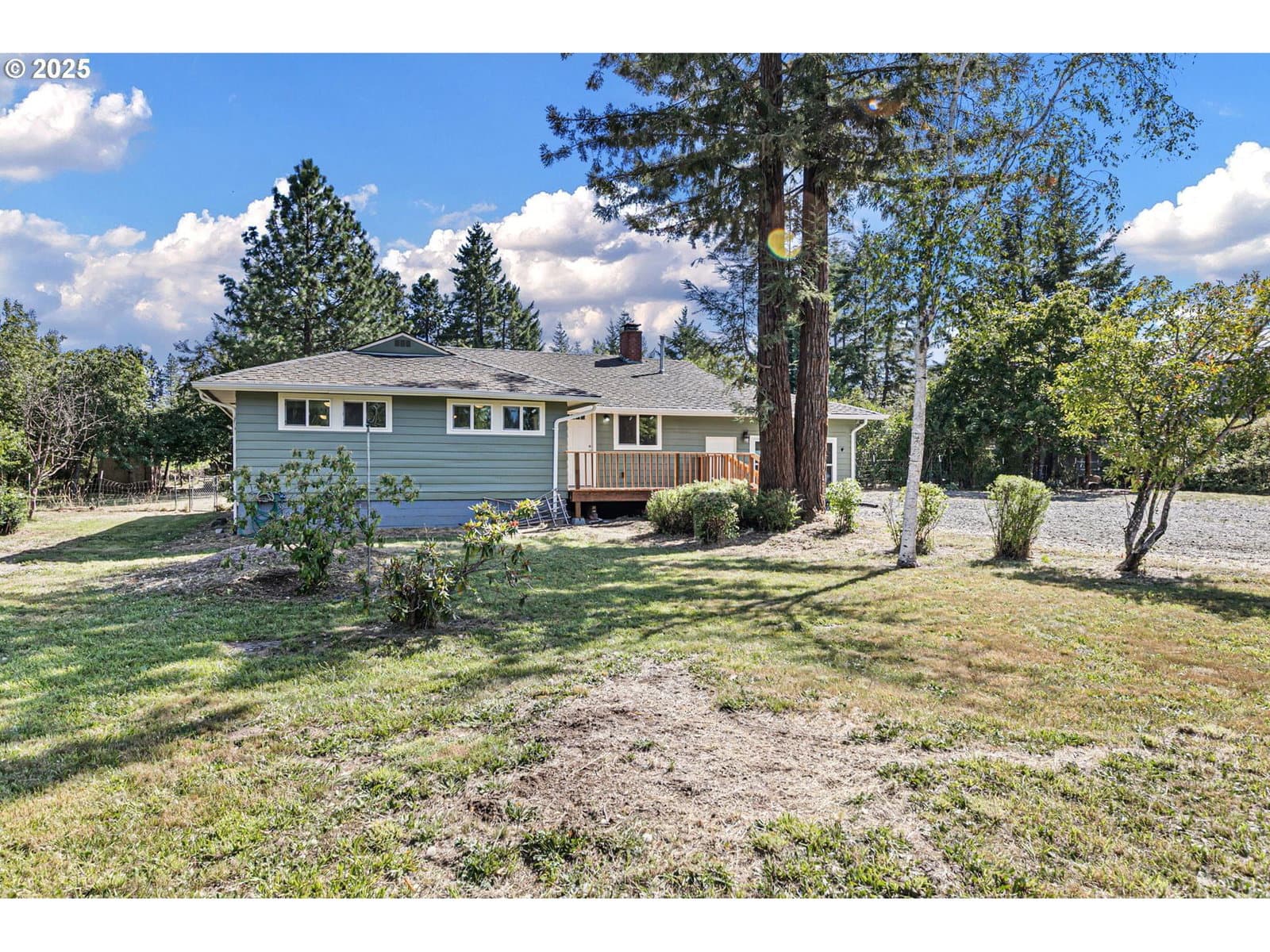 Back on market, no fault to home! Here is your chance to purchase this beautifully updated country retreat on a fully fenced and peaceful 2.48-acre lot. A brand-new front deck welcomes you to this charming 3-bedroom, 1-bath home, offering 1,880 sq ft of thoughtfully designed living space. Fresh paint, brand-new flooring, and new baseboards throughout create a bright and clean aesthetic from the moment you enter. The spacious living room has a cozy fireplace & opens seamlessly into the fully updated kitchen. Quartz countertops, sleek white cabinetry, stainless steel appliances, a deep stainless sink, and a bold blue tile backsplash create a modern yet warm space, rounded out with a pantry next to the refrigerator and views of the surrounding trees. Down the hall, you’ll find three comfortable bedrooms, each with ceiling fans and ample natural light streaming through vinyl windows. The bathroom features custom tile work, updated fixtures, and a stylish round mirror above a ceramic-tiled vanity. A large utility room includes a utility sink, space for laundry, and plenty of storage. The dining room features picturesque windows and access to your backyard. Step outside to enjoy everything this unique property has to offer. The acreage features a diverse orchard with apple, pear, plum, cherry, and fig trees. This land is perfect for gardening, harvesting, or simply enjoying the changing seasons. There is ample space for RV, boat, or vehicle parking, and a fire pit in the backyard makes for cozy gatherings under the stars. The partially converted garage is already plumbed for a bathroom, offering future potential or simply convert the space back in to a garage. The property is sub-dividable. Additional upgrades include a newer 1,000-gallon septic tank, newer well pump, updated plumbing, newer gutters & new roof. Solar panels help cut electrical costs to a minimum, and there is also a leased propane tank. Come view this turnkey property that is ready for its new owner!