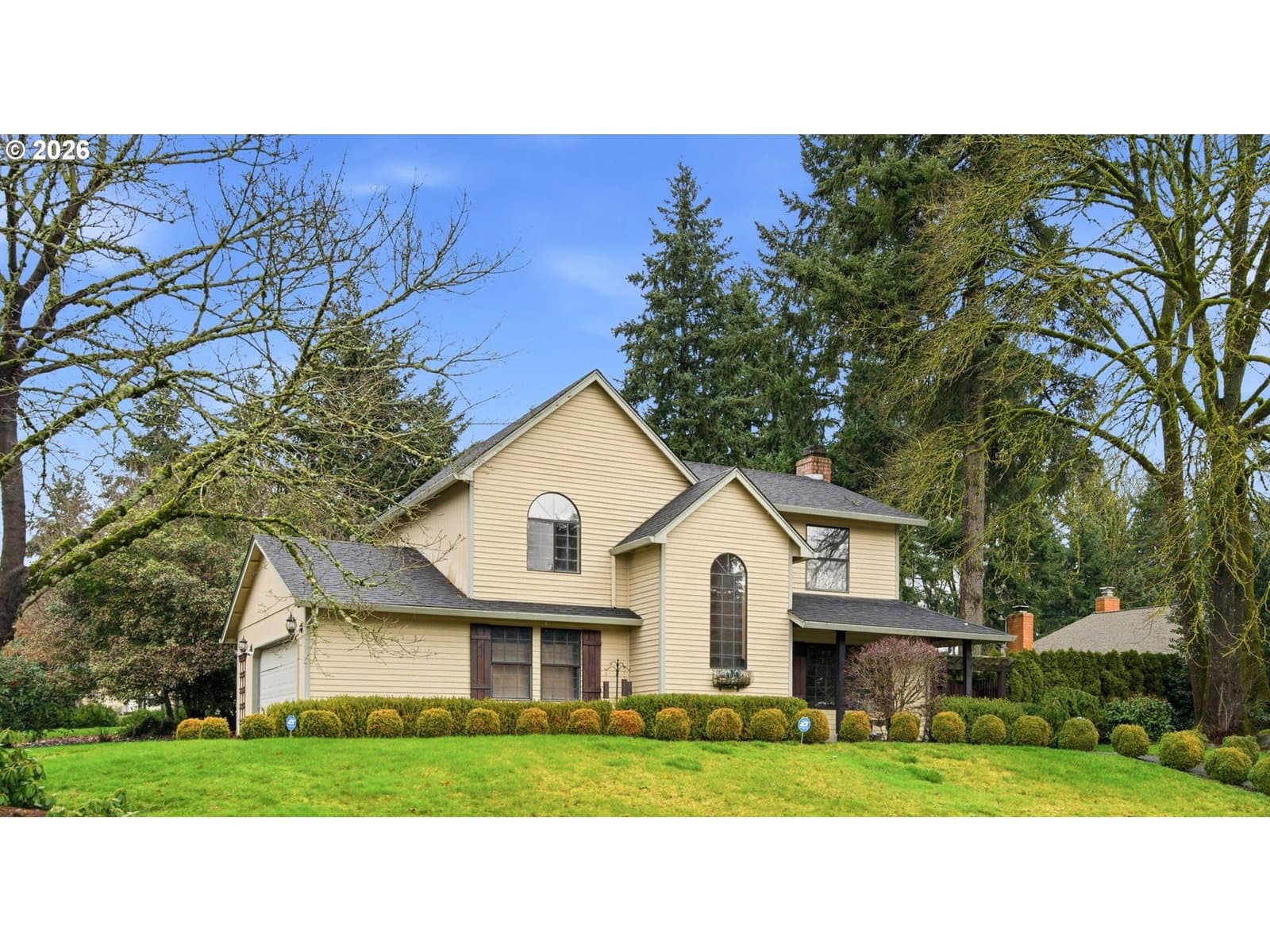 Beautiful home on corner lot, just 1 block from Bella Vista Park! Enter to the rich, cherry finish, wainscoting throughout entry, stairwell and carried into kitchen with coiffured ceiling. Shaker style, solid cherry cabinets. Granite countertops and great window above sink, overlooking private back yard. Dining room with French Doors, lead you to spacious, paver outdoor patio. Visualize yourself cozied up to the floor to ceiling, brick, wood burning fireplace, in sunken living room, with a glass of wine and a good book! Upstairs hosts a landing, overlooking grand entry. Primary en suite w/ large walk-in closet. So much to love about this enchanting home! Minutes to SE Side restaurants, shopping and PDX! Don't miss this one!