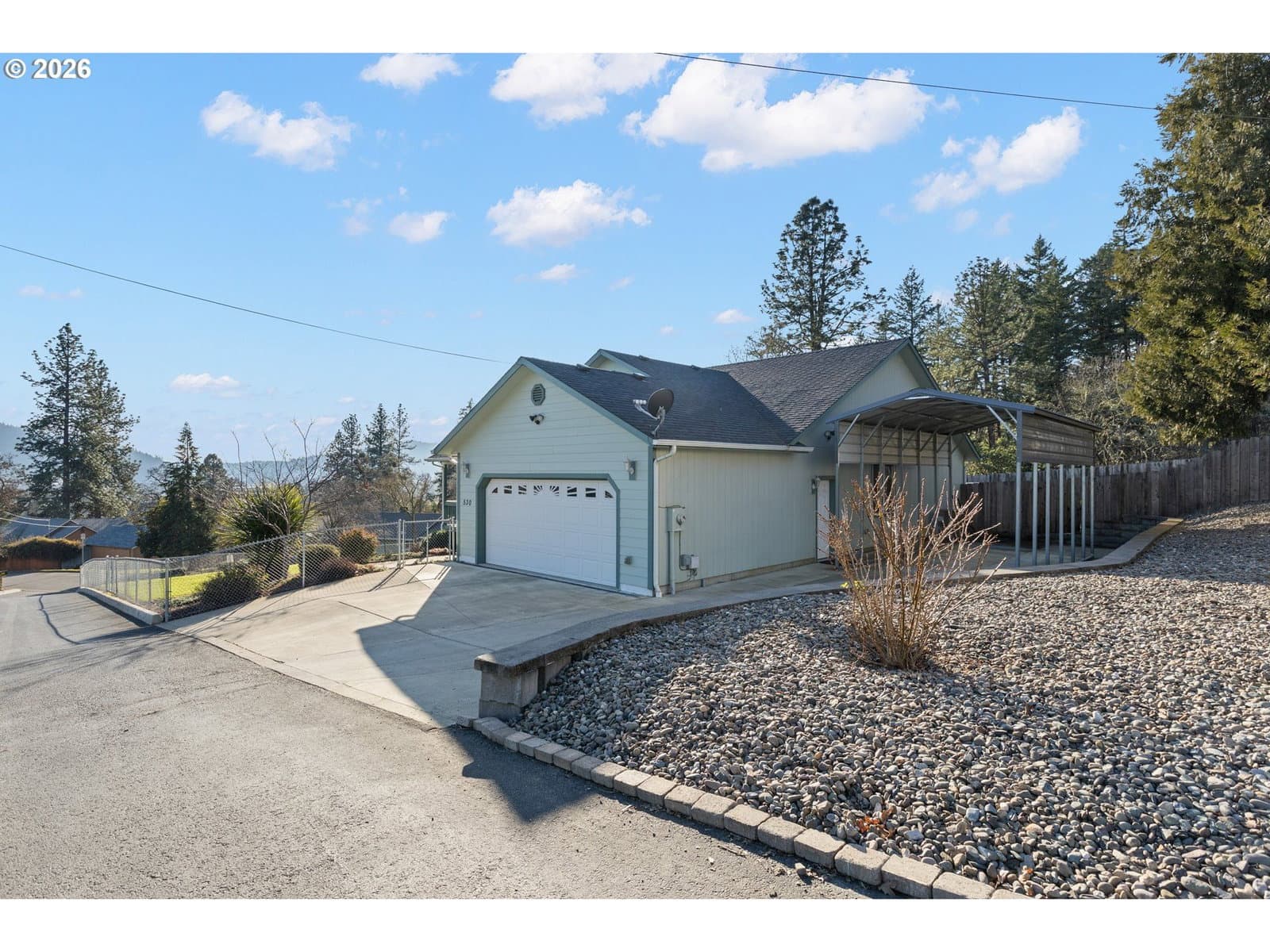 Welcome to this peaceful corner-lot home in Sutherlin’s Glorias View neighborhood! Take in beautiful mountain and territorial views from this well-maintained single-level residence. Coretec Plus Vinyl PLank flooring throughout. The open floor plan showcases vaulted ceilings, a spacious living room with remote controlled blinds, and a kitchen with granite counters and stainless steel appliances. The primary suite offers comfort and privacy with a walk-in closet and ensuite bath. Relax on the covered front porch or entertain guests on the back patio, complete with space for umbrellas and outdoor dining. A covered RV pad with full hookups makes storing your RV or hosting guests a breeze. Sitting on nearly a third of an acre, this property blends comfort, convenience, and tranquility—all just minutes from town amenities.