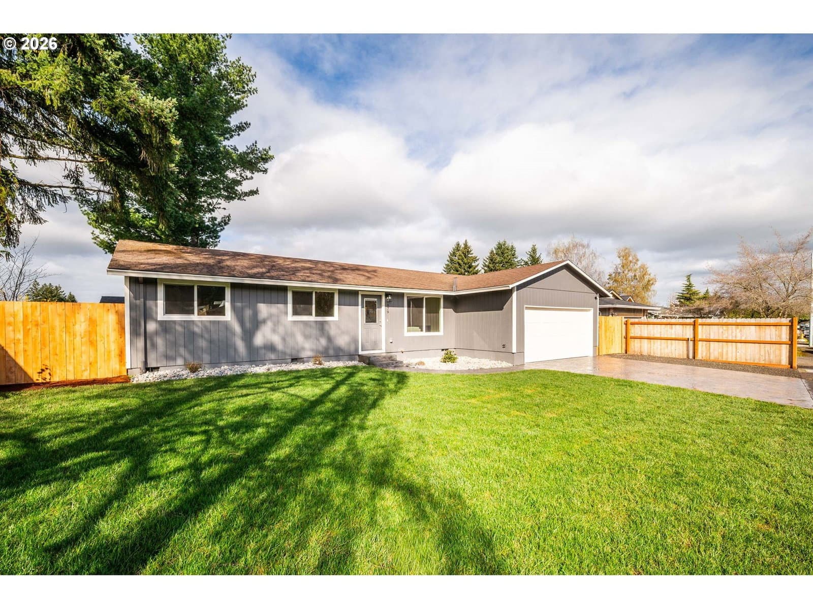Move-in ready, fully updated single-level ranch offering a functional layout with modern finishes throughout. New Luxury vinyl plank flooring and a light, neutral palette create a bright and inviting interior. Kitchen features new cabinetry, quartz countertops, SS appliances, island, pantry and more! Spacious main living areas with cozy fireplace in living room. The primary suite includes an en-suite bath with a tiled shower and walk-in closet. All new interior/exterior paint, trim, fixtures and more! Newer windows and central air HVAC system. Large fully fenced yard with concrete patio, new landscaping and a shed/workshop for storage or hobbies. All new stamped concrete driveway and walkways! Gated RV Parking! Ideally located across from River Mill Elementary in a quiet neighborhood and minutes from downtown Estacada, this home combines comfort, convenience, and value. Schedule your showing today!