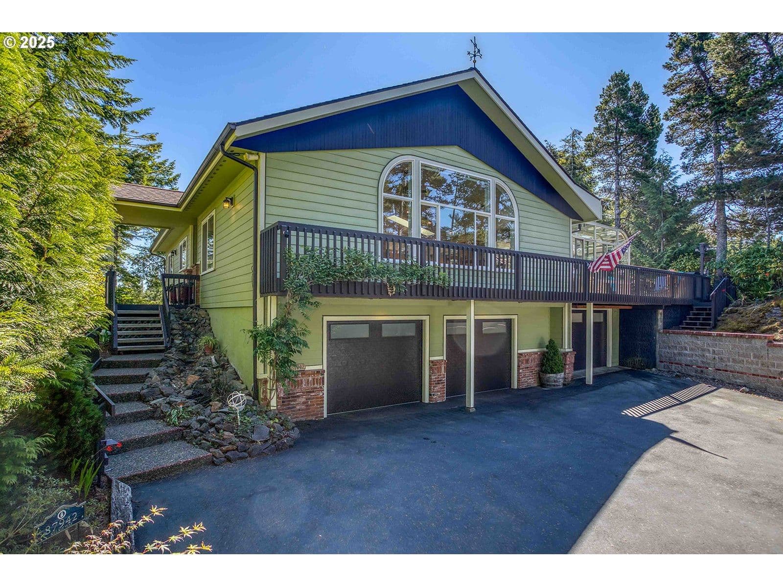 Private custom-built home in Heceta South just minutes to beach and ocean. Home features 4 beds, 3 baths, home office, upper living room, lower den, gourmet kitchen, huge thermostat-controlled sunroom and 3 car garage. Vaulted living room ceiling features 15'x8' Palladian windows to enjoy gorgeous sunsets and 40 acres of nature. Main level living plus lots of room to spread out on lower level. Terrific work-from- home environment if need be. Home is surrounded by multi-level decks, private hot tub, koi pond and fenced dog area. Many updates in last several years including roof, skylights, appliances, primary bath and garage doors. Nice landscaping and exterior lighting. Ask for amenities list. No drive-bys please; private driveway.