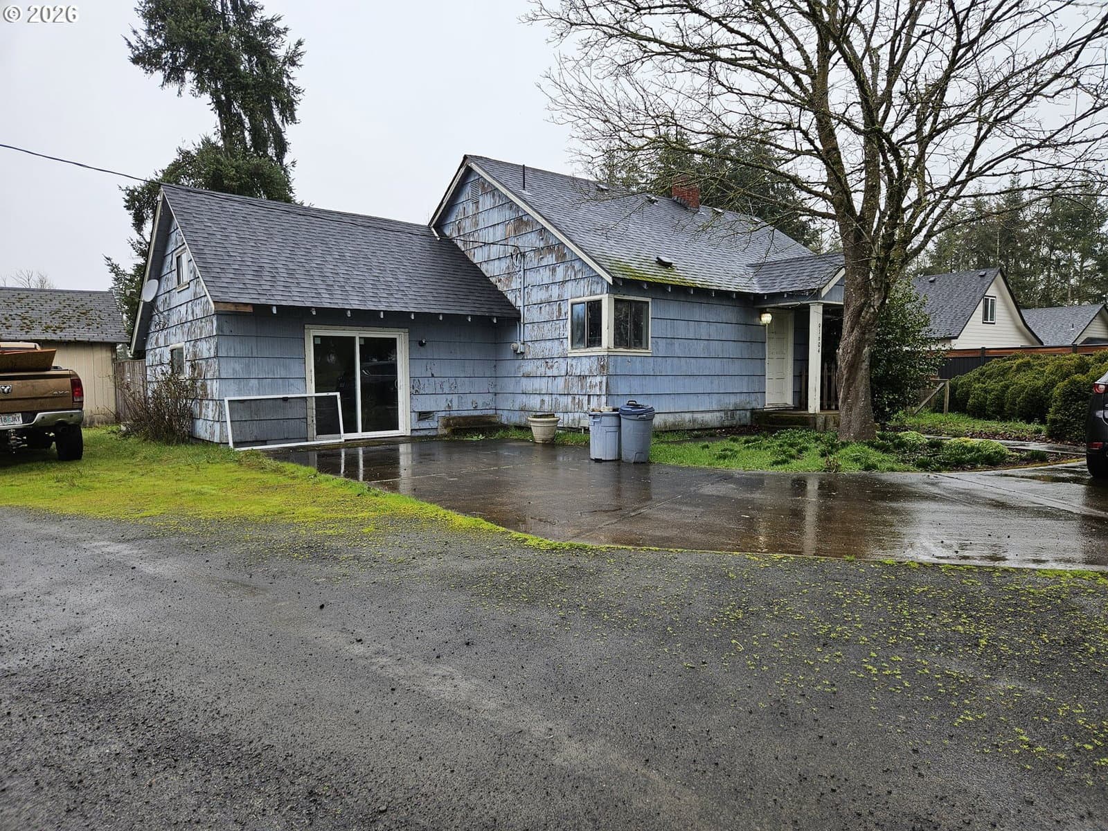 Solid fixer and outbuildings on large lot (.81 acre) in premium location just North of Coburg. Cash sale only, "as-is where-is". House is a single level 3 bedroom, 1 bath, 1108 sq. ft. per county, plus an additional 12x16 bedroom (192 sq. ft.) over converted garage not included in county records. Needs new siding, interior repair, kitchen/bath remodel, paint and floor coverings, but has newer roof and perimeter concrete foundation. Shared driveway with two other small parcels surrounded by high value farmland in pastoral setting with views of Coburg Hills and just six miles from Costco/Eugene. Outbuildings include a solid 24x50 shop on slab with attached pumphouse for irrigation well, plus a second 16x18 shop with wood floor.