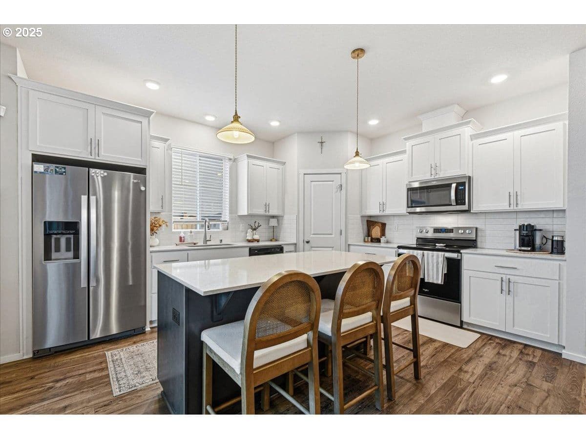 Main-level bed & full bath + greenspace setting in Kemper Grove! Open-concept living with tall ceilings, spacious kitchen w/ island, plus loft + upstairs This home has a bright open-concept design with tall ceilings, easy-care flooring, and a cozy fireplace. The kitchen features quartz finishes, lots of storage, and a large island perfect for entertaining. Upstairs offers a spacious primary suite with walk-in closet, plus a versatile loft and convenient upstairs laundry. Step outside to a covered patio and fully fenced yard, with trails, parks, and HOA-maintained landscaping, in a prime Ridgefield location.