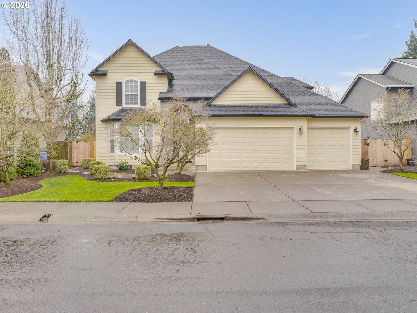 Do you want a possible 5 bedroom, or 4 with a den? This classic & traditional home might check a lot of boxes, so many extras! It features a landscaped front yard w/ a flagstone garden path to a fenced backyard. Feel good on the flat & level driveway, adjacent to a wide sidewalk, covered front porch w/minimal steps, a stately brick archway, and an elegant front door w/transom windows. Step into a grand entryway w/a formal living room & bay windows, wide baseboards & a formal dining room off the hallway entry. There's a huge gourmet kitchen, stand alone island & new countertops, recently remodeled. Enjoy a sunny dining nook w/French doors. The great room/family room has a cozy gas fireplace & is filled with light & a wall of windows to enjoy the loving landscaping in the backyard. Enormous stamped concrete patio, covered pergola, garden beds, manicured side yards, lush lawn & all the plants/flowers ready to bloom soon. A finished 3 car garage w/1 bay separated for a workshop/tool/woodshop/car/hobby room or studio? In the main level there is a half bathroom, a full utility room & a 5th bedroom w/out closet & is currently used as a den/music room w/built in cherry bookcases, storage cabinets, drawers & a desk. Upstairs a majestic staircase leads to a loft area overlooking the entryway. You'll find a double door owners suite w/ an extra sitting area, walk in closet & ensuite bathroom with a jetted tub, double sinks & a walk-in shower. 3 more upstairs bedrooms besides the primary, one is oversized w/a built-in desk inside the closet. Recent upgrades include Renewal by Anderson French doors, refinished hardwoods, new paint, carpeting, microwave, dishwasher, garbage disposal, & double oven. (Gas top, electric ovens) 2023 HVAC replaced included gas furnace & new air conditioner. 2025 manufacturer assessed window replacement of needed windows. Well maintained? Yes! Location to freeways, ride share, schools, shopping, library, banking, casino & hospital. Check! Move in ready!