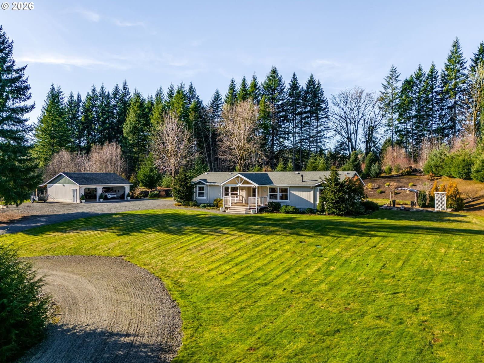 Country retreat starts with 5.03 acres, a 1,782 sq ft manufactured home and shop that offers the space and setup buyers are searching for—inside and out. Open the front door to this 3-bedroom, 2-bath home boasting an open floor plan with vaulted ceilings, gorgeous flooring, and classic paint. Entry flows into the spacious formal living or family room. Smile when you step into the kitchen with its clean tile countertops, large island and cabinets galore. Host from either the formal or everyday dining areas. Fall in love with the primary suite that offers double closets, primary bath with double sinks, soaking corner tub, large shower, and storage—separate from the guest suite. Drop dirty clothes right into the laundry with its extra folding table and easy access. And if that is not enough, check out the outside options: a U-shaped roundabout driveway, a 3-car detached garage (sheetrock, 210 power, attic storage), large tool shed, and garden shed—room for projects, storage, and hobbies. Host on the large covered back patio and take in a private backyard. Enjoy a park-like backyard with room to play, garden and relax—daily. Raised beds and established garden space to enjoy homegrown produce, plus an animal shed and fenced animal fields ready for your four-legged plans. Explore your own trails by walking, biking or ATVs and enjoy the privacy of acreage living—while still being minutes from schools and everyday amenities. See it in person to feel it.